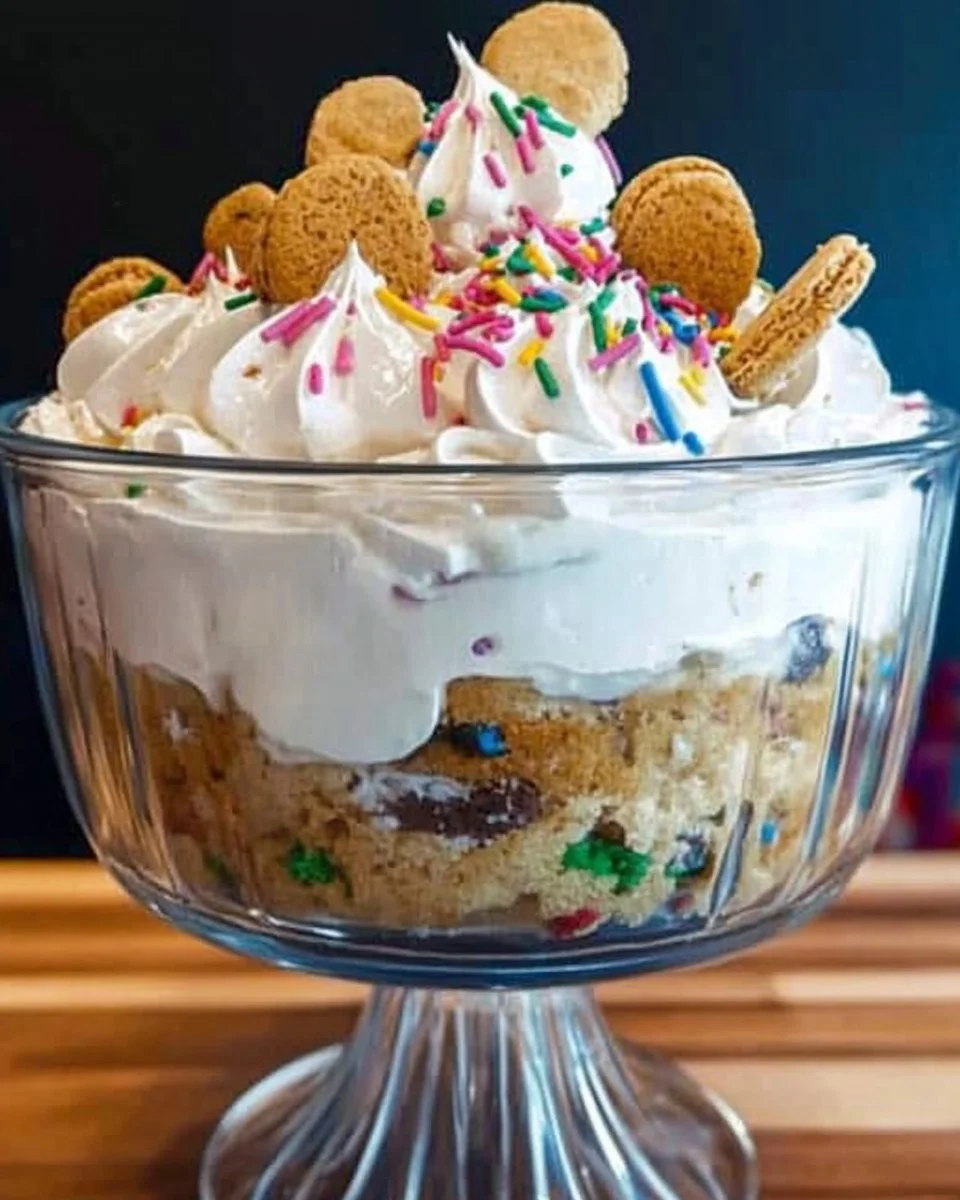 Serving ideas that make life easier: set out a big spoon and a ladle so people can scoop without fuss. Keep napkins nearby because rainbow sprinkles travel. If you want to pre-plate for a party, spoon the trifle into small clear cups and refrigerate until guests arrive. Kids love that and it keeps lines moving.