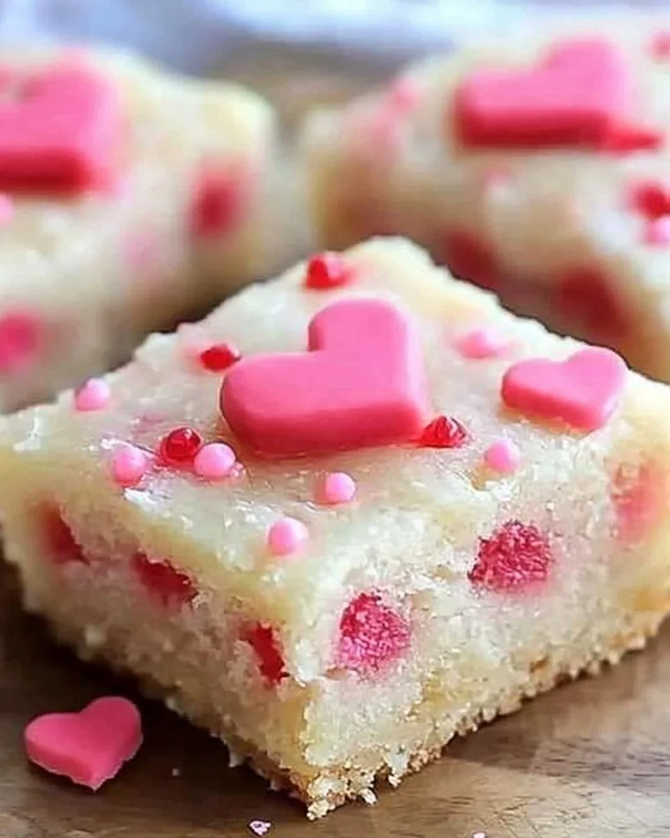 You will notice things as you make them. The dough will feel soft and slightly tacky, not dry. When you press it into the pan, your fingerprints should leave small impressions that smooth out in the oven. The edges will take color first, turning a pale gold while the center holds on to chewiness. When the glaze goes on, it will look wet and bright for a minute; that is the moment to scatter the sprinkles and candy hearts before it sets.