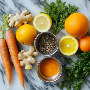 Carrots are rich in beta-carotene, and just ten of them in this recipe deliver a strong vitamin A foundation. If you’re curious about just how powerful carrots can be, check out this deep dive into their nutrition. Combine them with lemons and oranges loaded with vitamin C, and you’ve got a shot that supports immunity and skin health. Ginger and turmeric take it further, fighting inflammation and giving the shot a spicy edge. The pinch of black pepper isn’t just for flavor—it helps your body absorb the curcumin from turmeric more effectively.