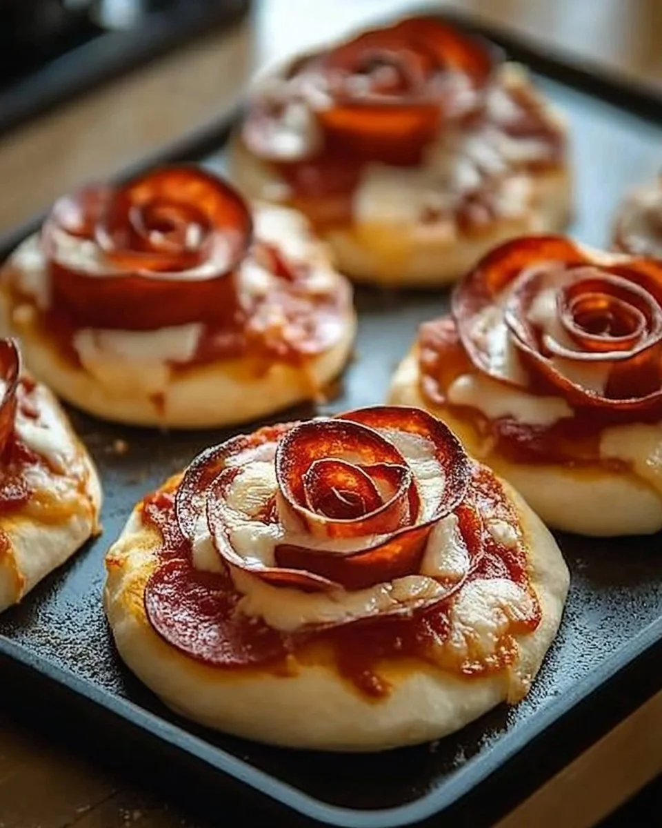 Watch for the edges to brown and the cheese to melt. A couple extra minutes will make the tops crispier if you like them toasty.Allow to cool slightly before serving. Enjoy your Pizza Roses!
