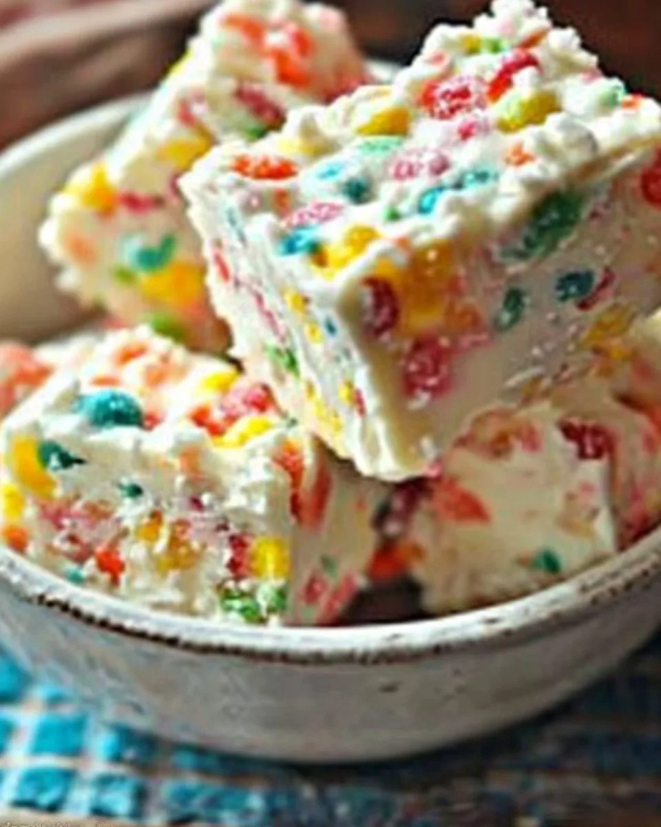 The first time I made this fudge was more of an experiment than a plan. We had a box of Fruity Pebbles left from a weekend of cereal art with the kids, and a little jar of white chocolate chips called to me from the pantry. I wanted something fun, quick, and full of color, and what came out of the pan felt like a party on a plate. It was bright, soft, and nostalgic all at once.