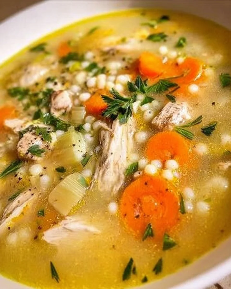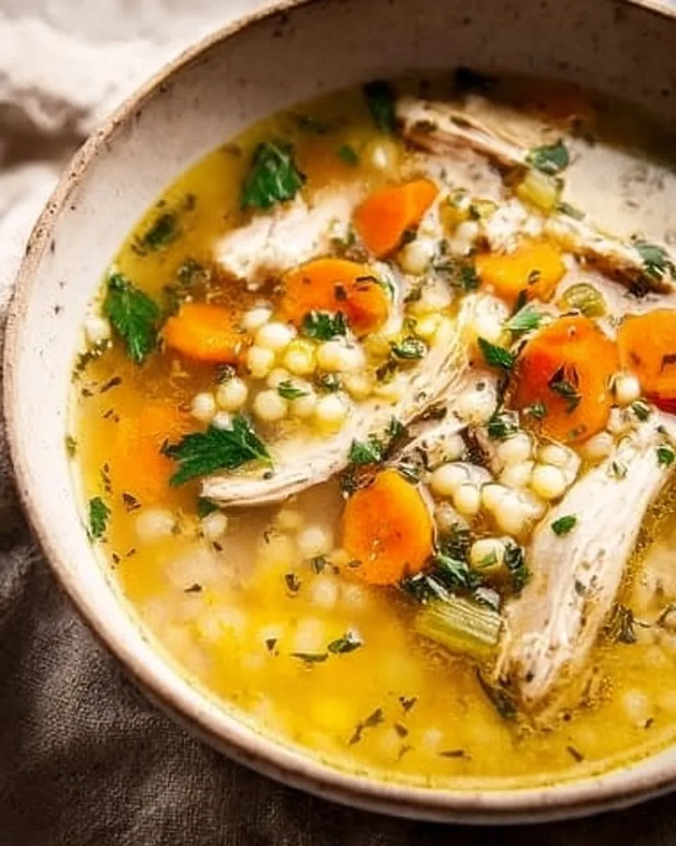 A warm and comforting soup made from leftover turkey, perfect for cozy gatherings and family meals.