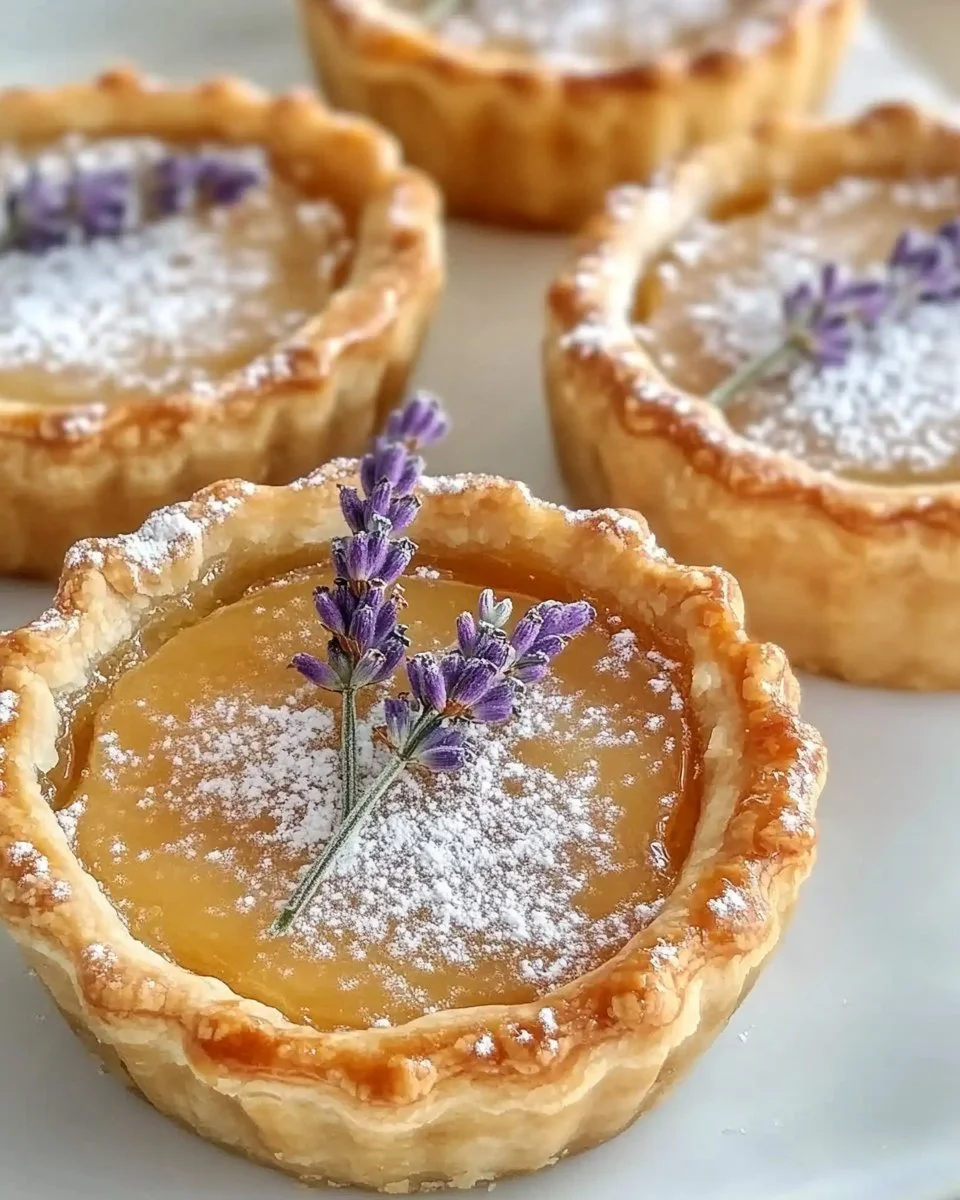 When mixing the honey, lemon juice, heavy cream, lavender, and salt, be sure to enjoy the scent of each ingredient, feeling how they blend together harmoniously. Pouring the mixture into the crusts feels rewarding, and watching them bake, gently bubbling in their own little pockets, is always a delight. By the time you take them out, slightly cool and dusted with powdered sugar, it is as if you have created little edible treasures to share with those you cherish.