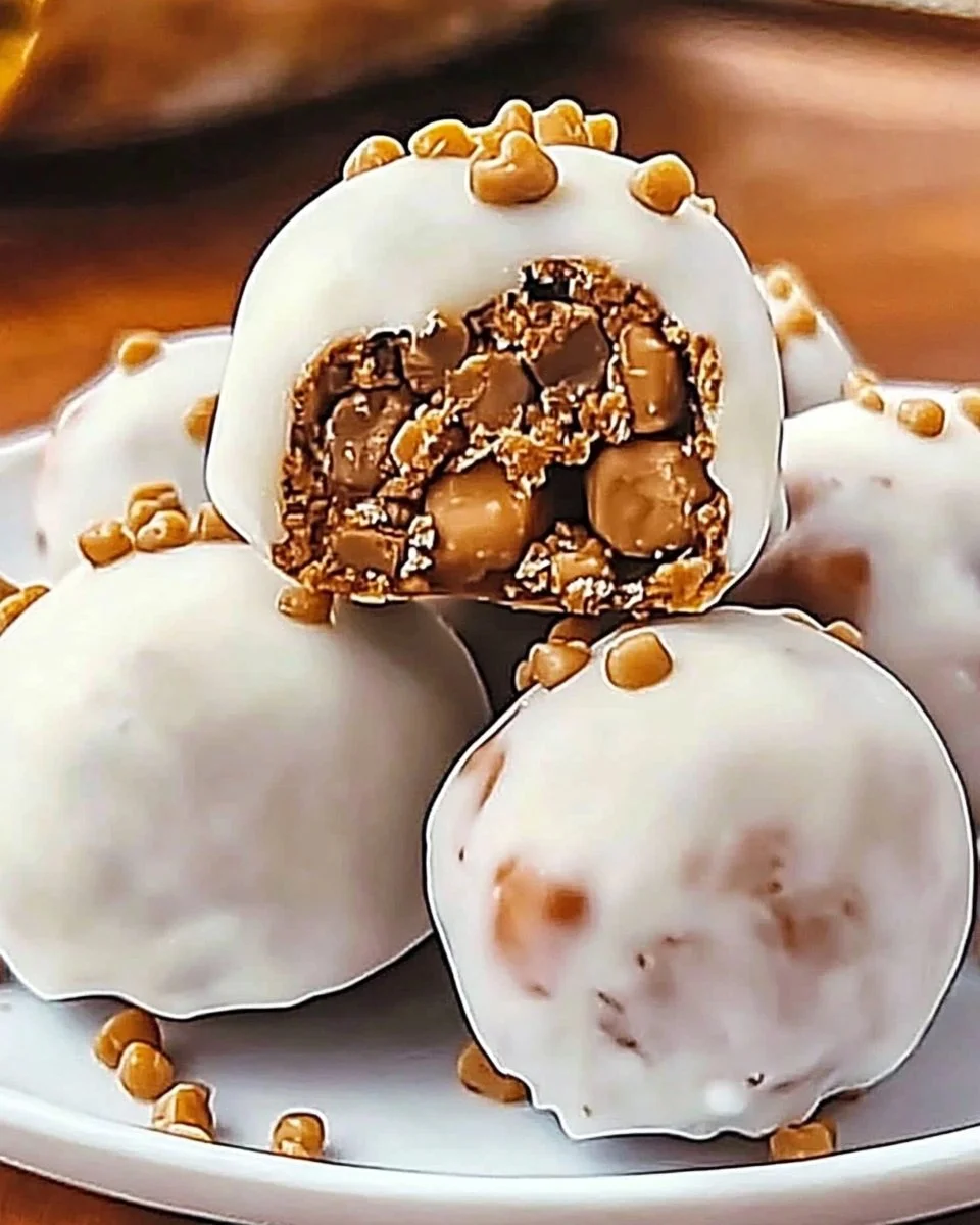 When you form the little balls and freeze them, the kitchen grows quietly expectant. Melting the white chocolate is a slow, warm moment where the chocolate loosens and becomes shiny, and the scent fills the room. Dipping the chilled centers creates a crisp shell that yields to a soft, nutty middle. It is simple, comforting work that invites conversation and company.