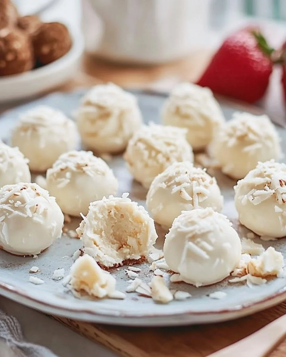 I like to put them on a simple plate at the center of the table. The kids reach in, you hear the coconut rustle, and someone always asks for another. If friends drop by unexpectedly, I tell them to help themselves. For holiday platters, I mix colors by rolling half in graham and half in coconut for contrast. For a more adult touch, I serve them with a little espresso or a glass of sparkling water.