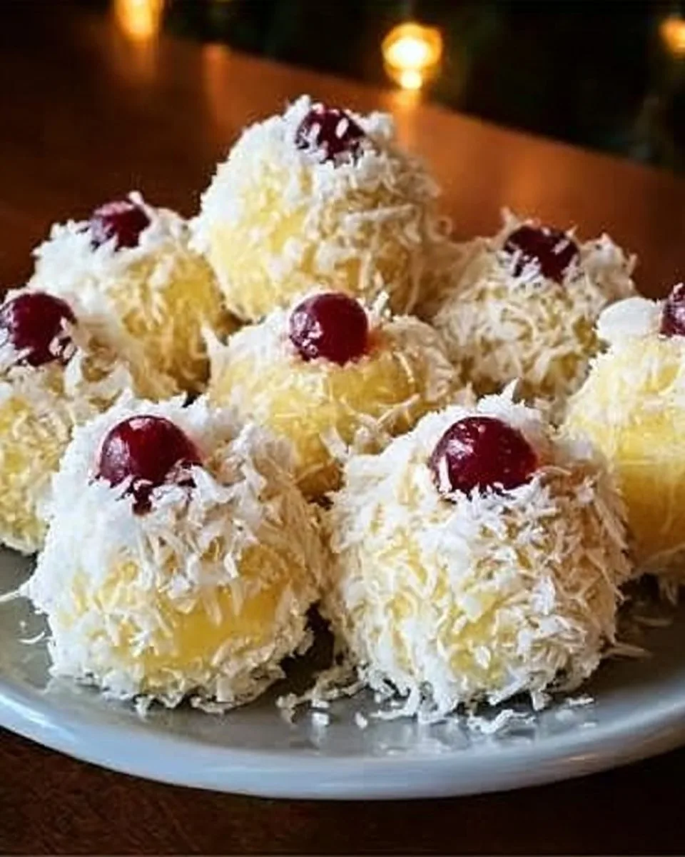 There is a neat, slightly sticky memory that goes with these little balls. I first made them for a holiday potluck when my children were small and my apron had more flour marks than new fabric. My neighbor brought over a tin of cookies and an enthusiasm that made me try something different for our family table. I wanted a treat that was easy, bright, and a little playful. These Pineapple Christmas Balls fit the bill with their soft center and coconut coat. They seemed to hush the room in the best way, as if everyone paused to remember the warm year we had.
