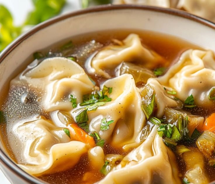 Over time I began to change small things. Sometimes I fold in fresh herbs. Other times I use homemade potstickers for a weekend project. Each slight change made the recipe ours, but the center stayed the same: warm broth, tender dumplings, and a handful of crisp greens.