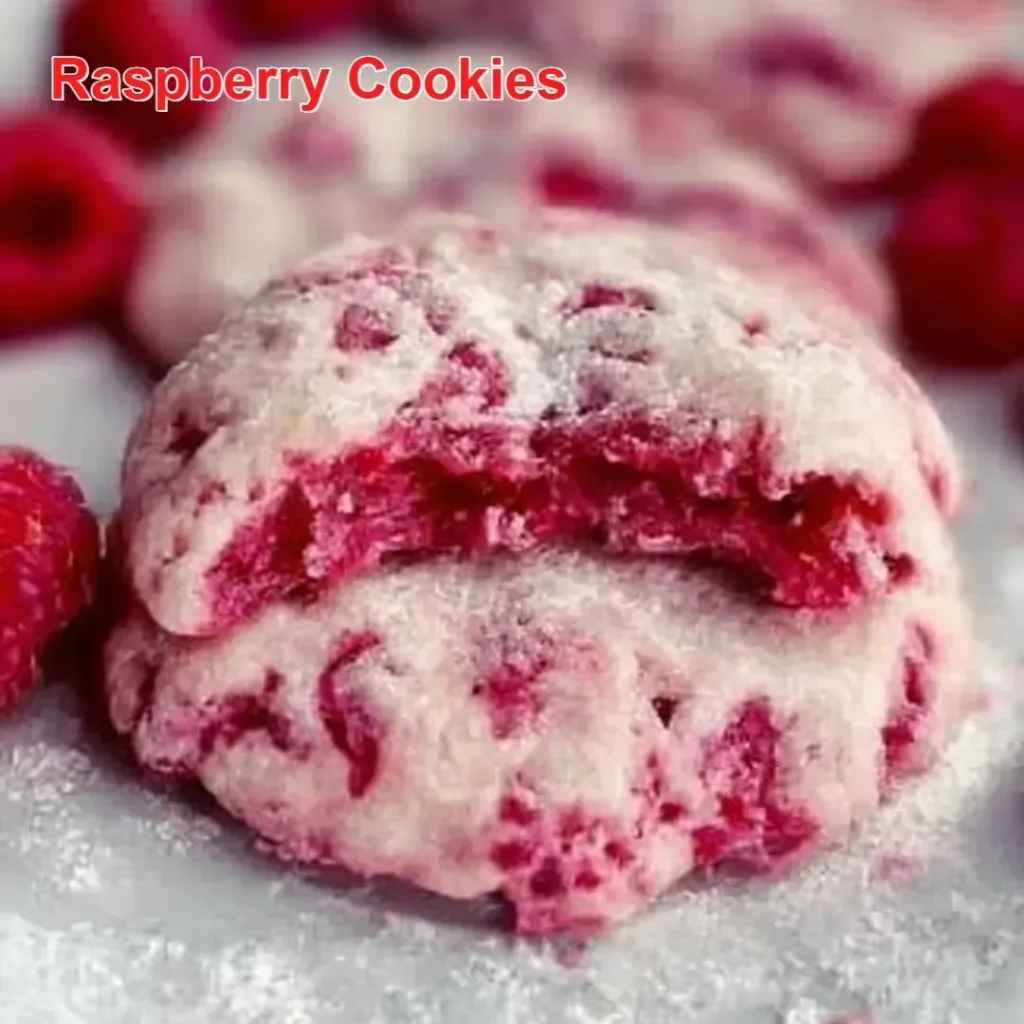 Raspberry Cookies have a way of bringing everyone together. Imagine gathering around your dining table, the soft light glowing from the warm overhead fixture. The cookies are stacked high on a large, colorful plate, inviting eager hands to reach for one.